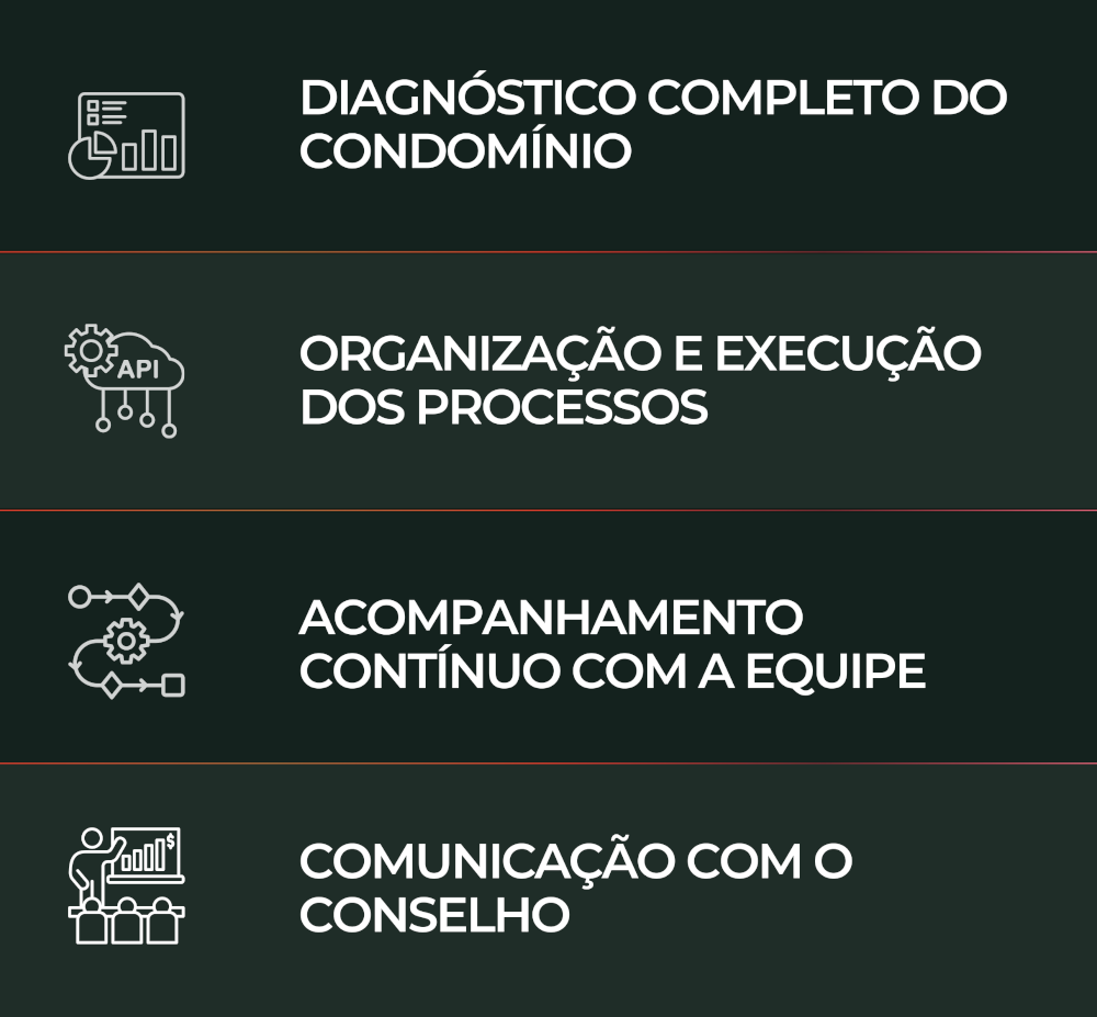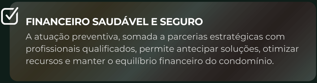 Por isso atuamos como síndicos profissionais, coordenando processos administrativos, financeiros e operacionais, e garantindo que tudo funcione com clareza, equilíbrio e responsabilidade.